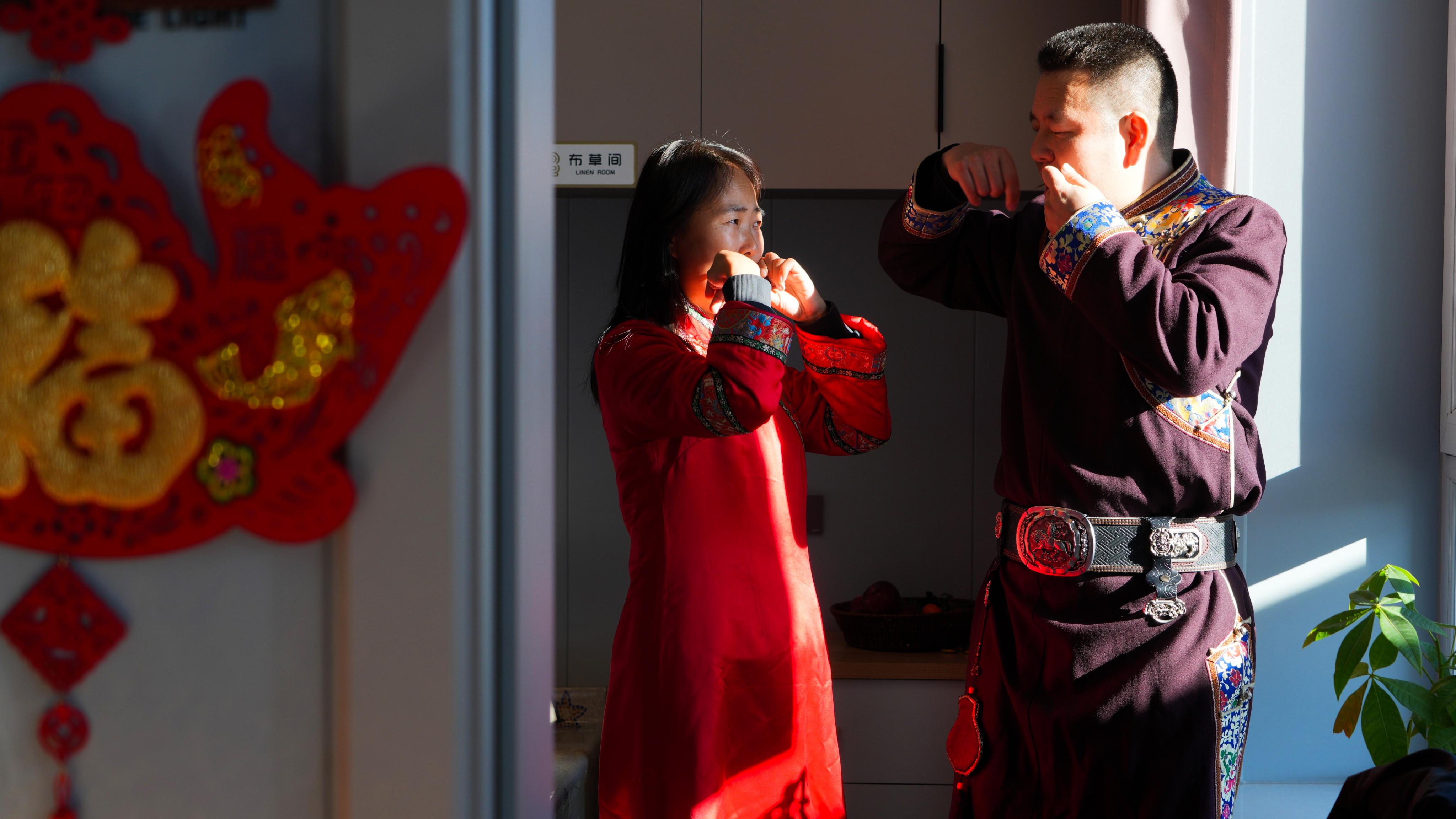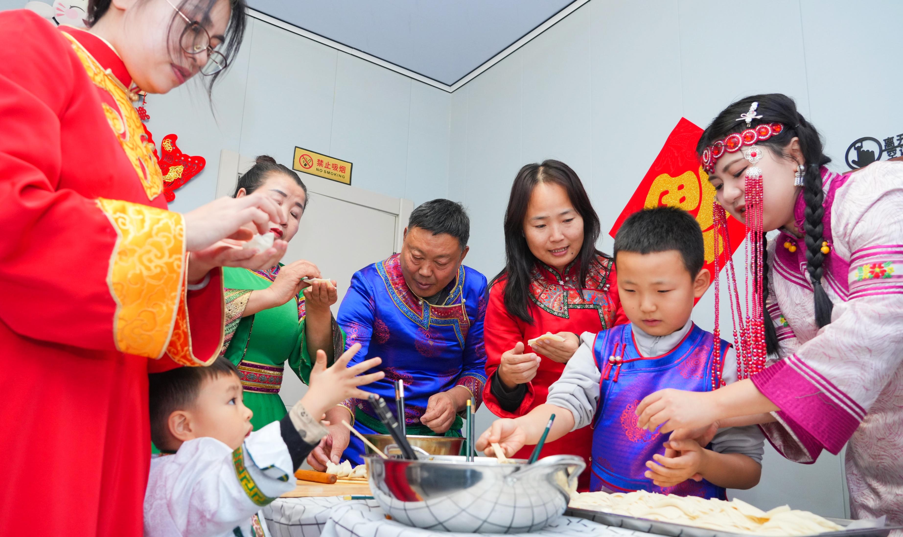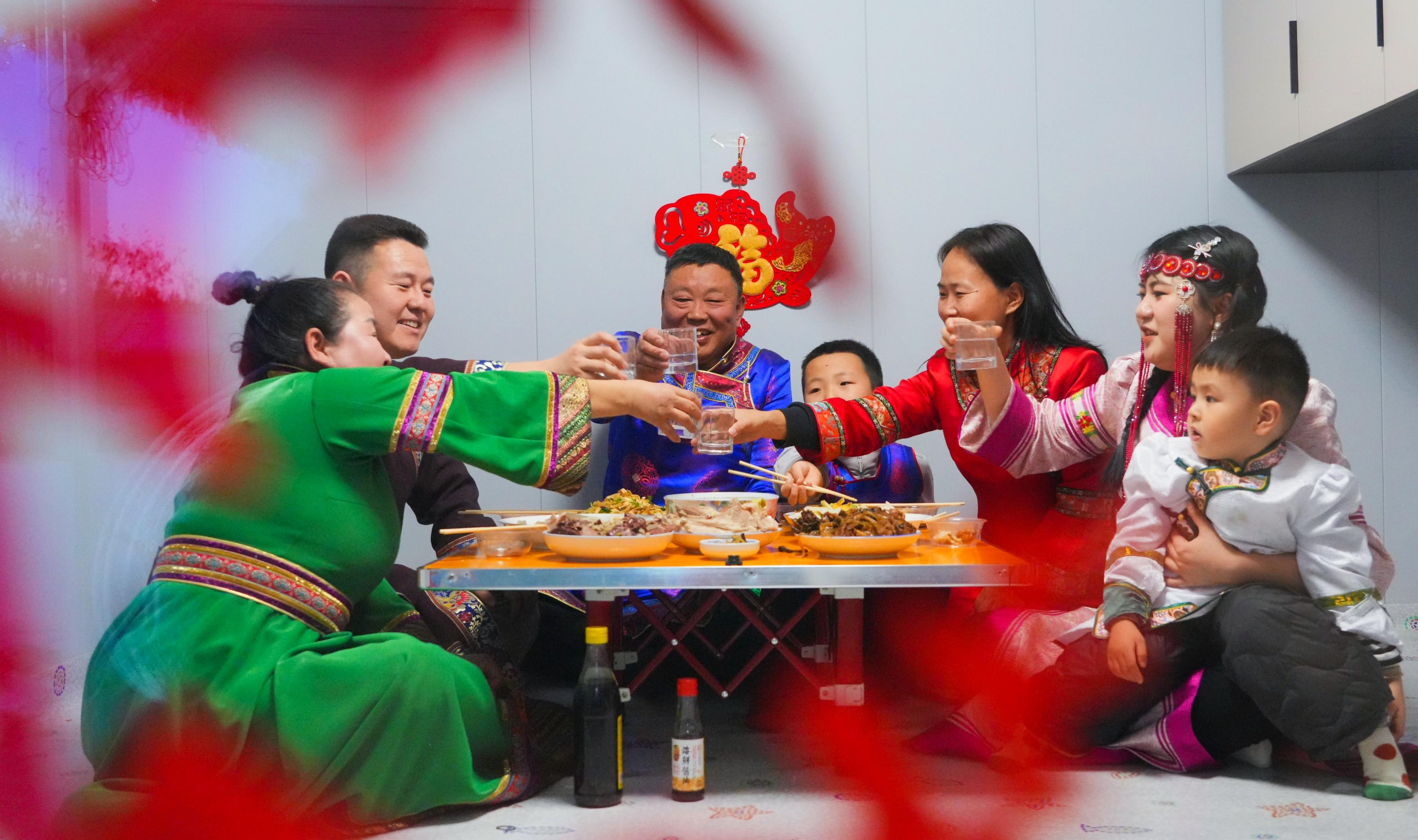 “達(dá)斡爾族小年的規(guī)矩是得貼福字、包餃子,這樣福氣才能留得住!”郭勇一邊招呼鄰居幫忙布置房間,一邊笑著說,“今年我愛人在外地,小年回不來,多虧了這些好鄰居,雖然人不齊,但‘年味’一點不能少。”