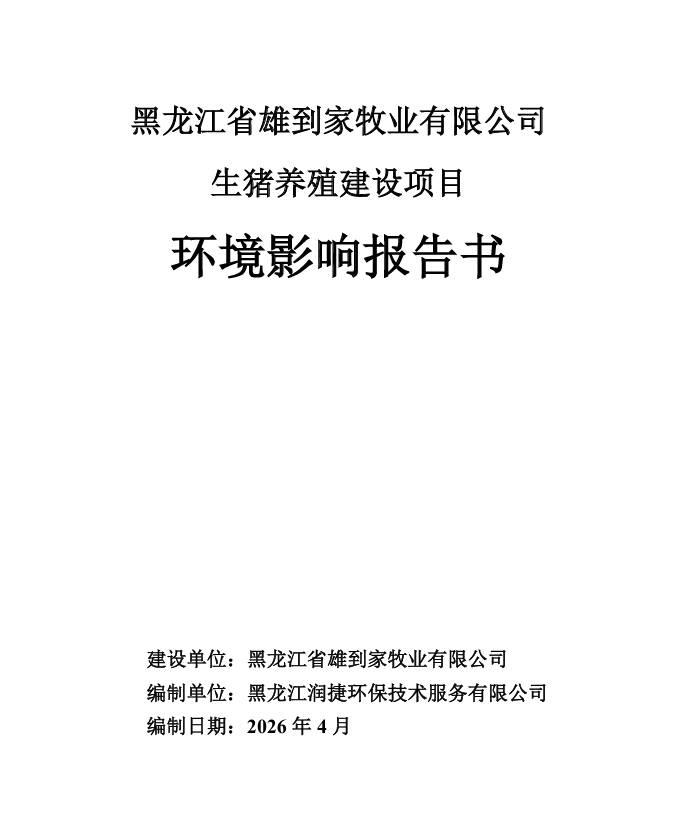 黑龍江省雄到家牧業(yè)有限公司生豬養(yǎng)殖建設(shè)項目環(huán)境影響評價報告書 -報批前公示.pdf